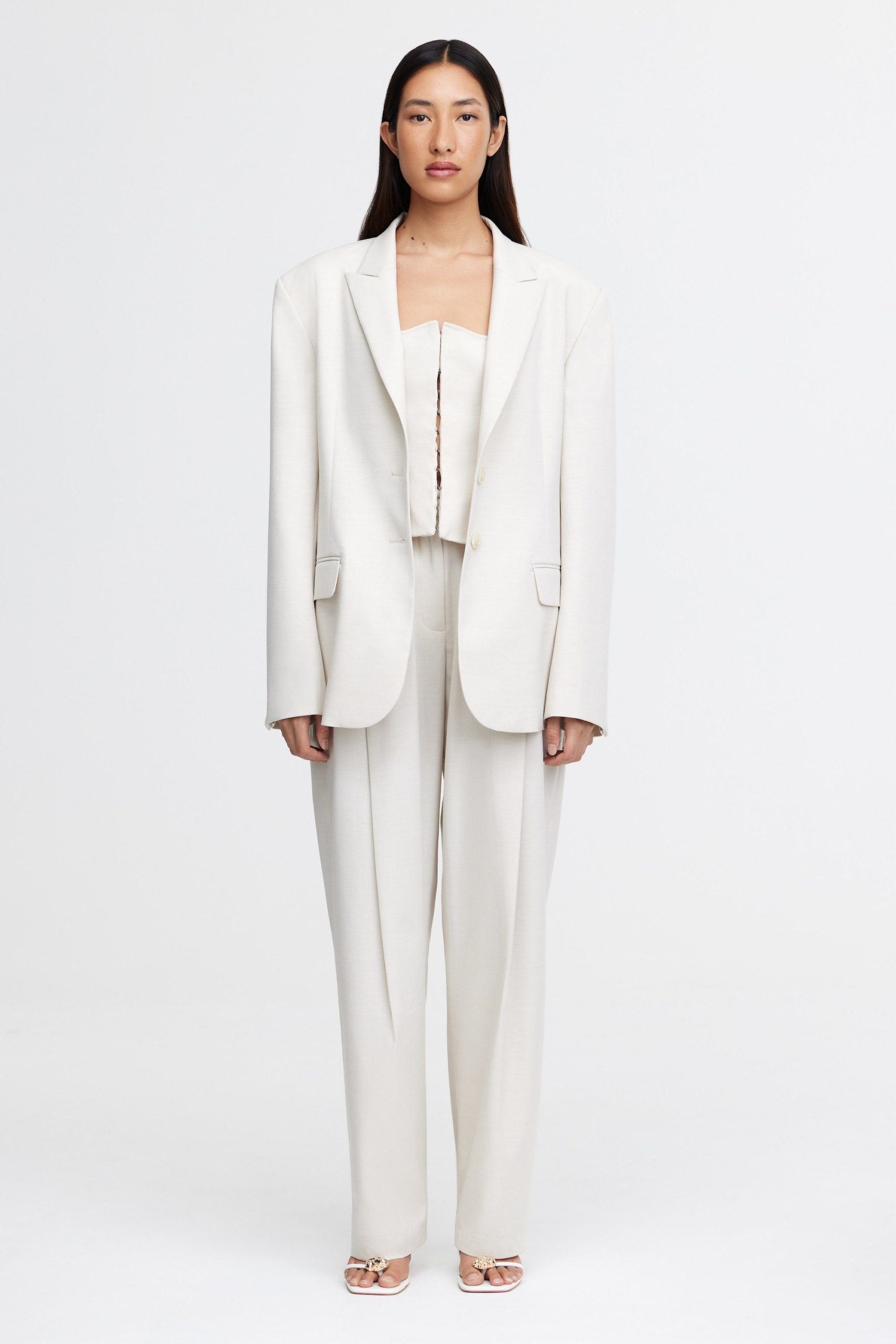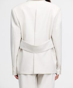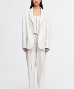 Introducing the Croxby Jacket in Pearl, a refined take on modern tailoring. Designed with a boxy silhouette, this fully lined blazer features a clean front button closure, long sleeves, and functional front pockets for added versatility. A subtle back waistband panel detail adds structure, elevating the relaxed fit. Whether styled over tailored trousers or draped over a dress, this piece is a wardrobe essential for effortless sophistication.Details:- Boxy silhouette – Front button closure- Long sleeves – Functional front pockets- Back waistband panel- Fully linedModel is 177cm / 5’9.5″ wearing an AU 8 / US 4Composition:Main: 73% Polyester, 21% Viscose, 2% Lyocell, 2% Wool, 2% ElastaneLining u0026amp; Backing: 100% Polyester